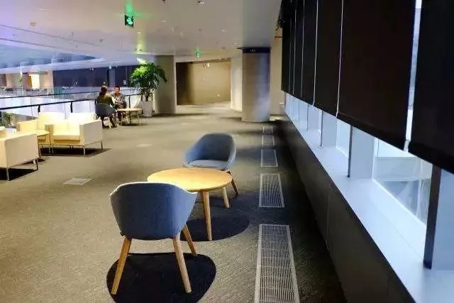 整棟大樓采用了下送風(fēng)系統(tǒng),其顯著優(yōu)點(diǎn)有3個(gè):一是節(jié)能——空氣是分層的,熱氣流向上走,由下而上送風(fēng)的特點(diǎn)是空氣溫度均勻。其次,空氣品質(zhì)比較好,送出來的空氣里面都有新風(fēng)量,下送風(fēng)系統(tǒng)出風(fēng)后首先進(jìn)入呼吸區(qū),新風(fēng)濃度高。再次,下送風(fēng)系統(tǒng)不直接吹向頭部,舒適度更高。